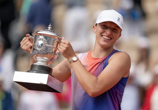去年,当斯瓦泰克和阿尔卡拉斯在罗兰-加洛斯的红土球场上举起冠军奖杯时,他们不约而同摘下了手腕上的吸汗带,戴上了劳力士手表。那个金冠标志在职业网坛无处不在。