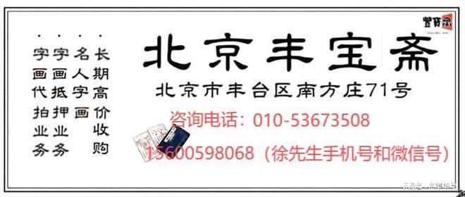 在浩瀚的艺术长河中,名人书画作为文化瑰宝,承载着历史与情感的深厚积淀。而北京丰宝斋,作为艺术品领域的佼佼者,深知每一件名人书画背后所蕴含的价值与意义。为此,我们特别推出“名人书画尊享回收”服务,旨在让每一件珍贵的艺术品都能得到应有的珍视与传承。