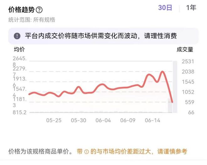 据媒体报道,以千岛App上的“前方高能”系列Labubu挂件为例,其成交均价自6月16日起应声“腰斩”,从前一日的2279.7元迅速跌至1181.3元。价格的暴跌,瞬间引爆了市场的交易热情:该系列在17日前的日均成交量不足66个,17日便激增至559个,18日成交量更是再度飙升近四倍,高达2531个。