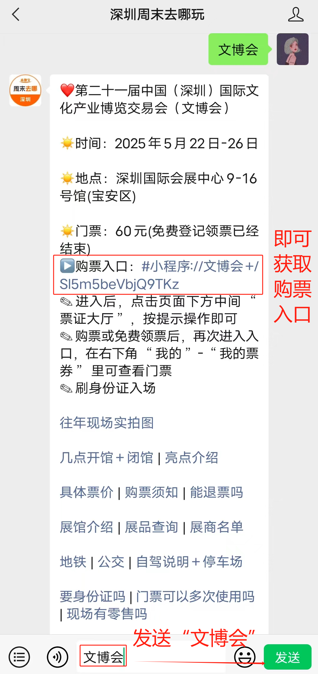 温馨提示:微信搜索公众号【深圳周末去哪玩】,关注后在对话框回复【文博会】可获取深圳文博会购票入口、开放时间、地点、公交地铁停车场、购票及入场须知、展馆介绍、展商名单、分会场汇总、活动推荐等