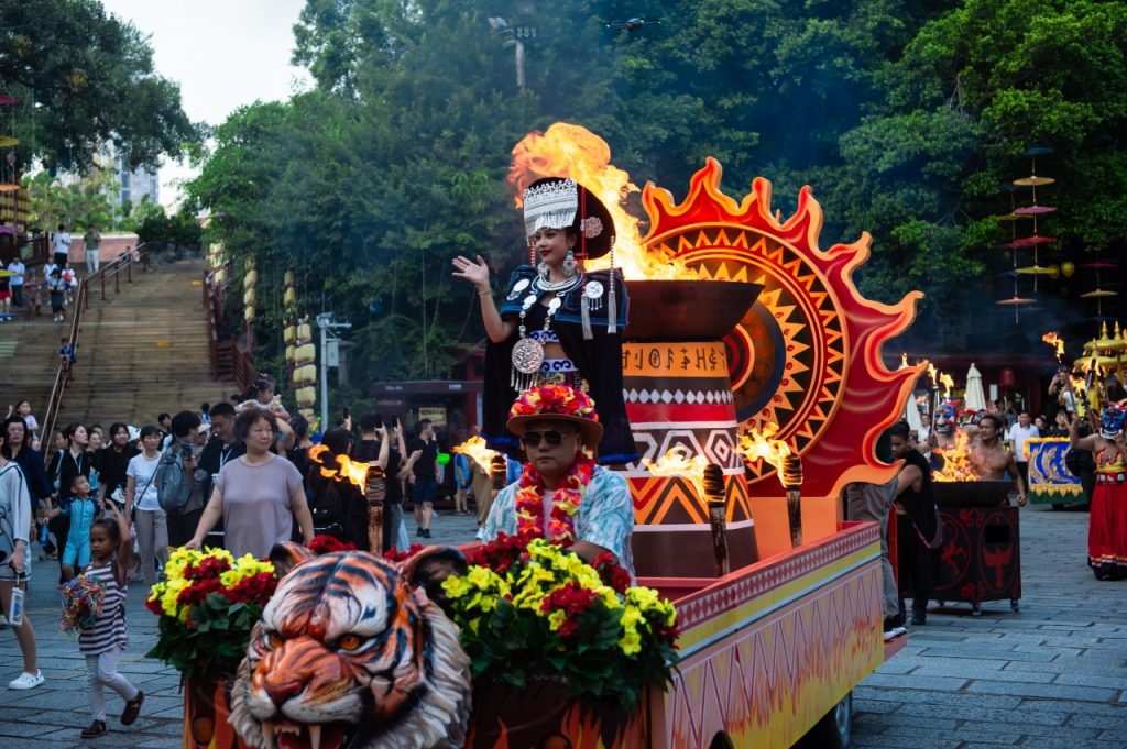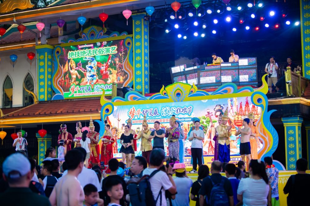 中国民俗文化村“2025盛夏狂欢庆典”活动盛大启幕。本次活动将持续至8月31日,以“梦华仲夏夜·泼水狂欢节”为主题,依托全新打造的《锦绣盛市·梦华录》主题区及焕新升级的泼水广场,融合1大梦华仲夏夜、1大泼水狂欢派对、2大泼水火舞巡游、4大国风演艺、百场非遗互动等多重全新文旅体验,全景呈现一场穿越古今、文化与激情并存的仲夏狂欢盛会。