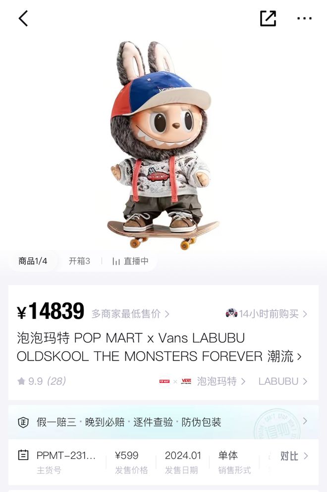 上次被炒得这么热的盛况,还是去年发售的Labubu与Vans联名款,发售价为599元的潮玩在二手市场上最高已经涨价到3万元左右一个,摇身一变奢侈品。