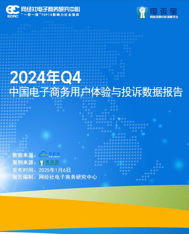 在此背景下,2025年1月6日,依据网络消费纠纷调解平台“电诉宝”2024年四季度受理的全国100家互联网消费平台纠纷大量案例数据,“一带一路”TOP10影响力社会智库网经社电子商务研究中心发布了《2024年Q4中国电子商务用户体验与投诉数据报告》。