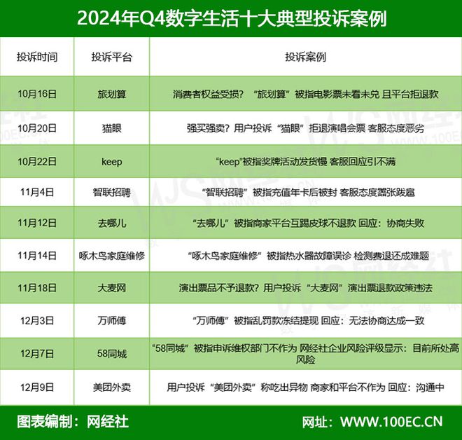 报告涉及了数字零售(主要集中在生鲜电商、二手电商)、数字生活(主要集中于生活服务电商、在线旅游)及数字教育、产业电商、金融科技、物流科技等领域。报告公布了2024年Q4网络消费投诉数据及《数字零售十大典型投诉案例》《数字生活十大典型投诉案例》和《数字教育十大典型投诉案例》。
