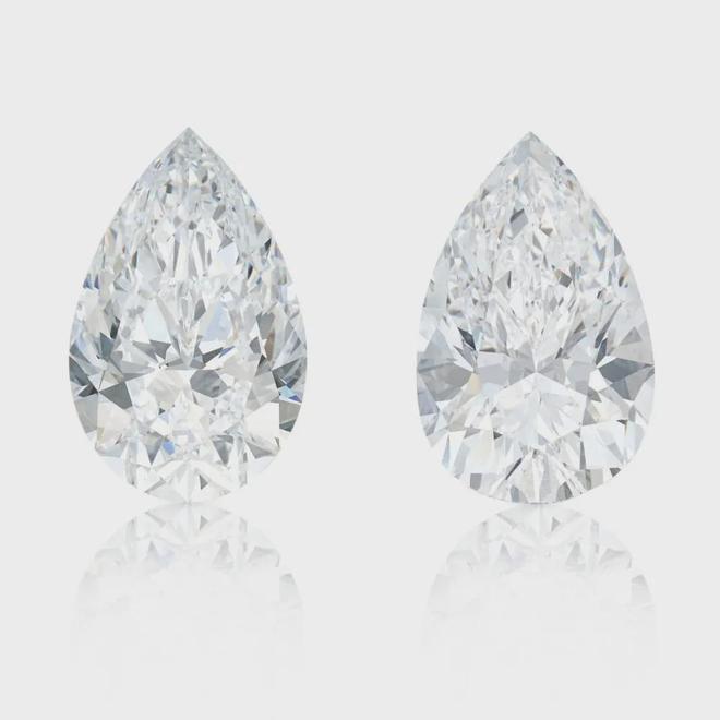 ↑ 同场拍卖中一对钻石裸石的表现也十分亮眼,两枚钻石分别分别重10.32ct和10.11ct,D色,Flawless 净度,采用水滴形切割,成交价高达134.71万美元,远超同场其他材质珠宝拍品。