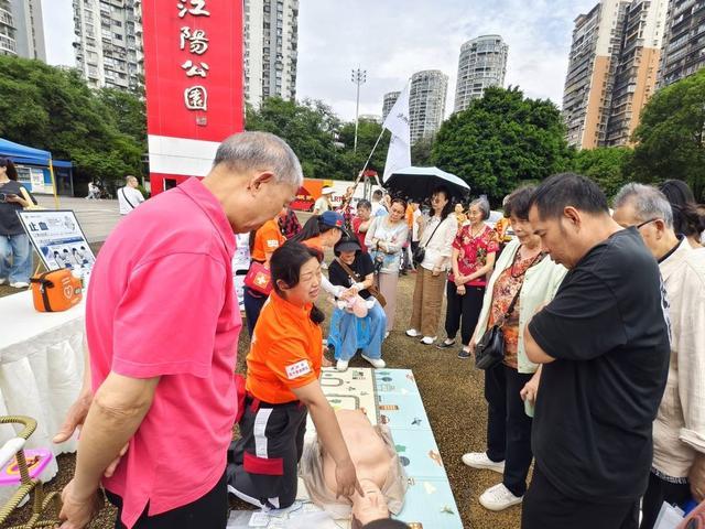 其中,急救知识学习区成为最热闹的“人气课堂”之一。泸州市红十字会工作人员被市民层层围住,一场关乎生命安全的“全民必修课”正在火热进行。