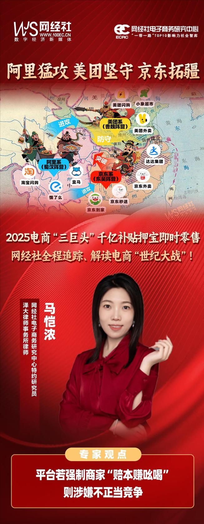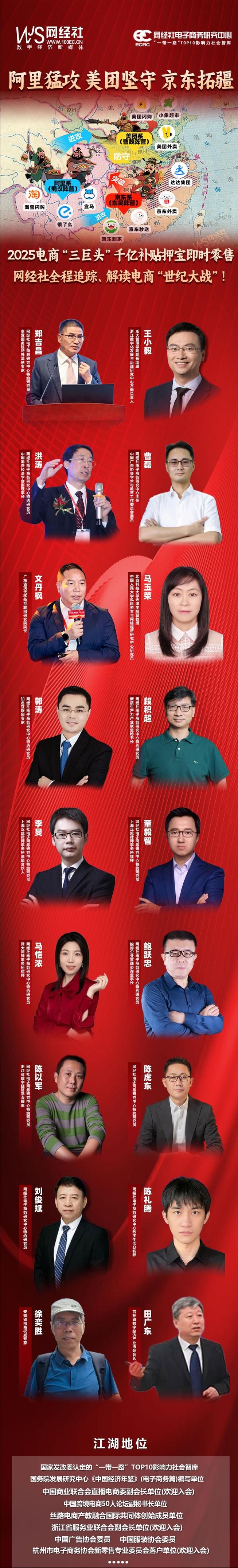 对此,网经社发起“阿里猛攻、美团坚守、京东拓疆,2025电商‘三巨头’干亿补贴押宝即时零售”大型主题策划,发布《2025年电商“三巨头”押宝即时零售全景分析报告》,组织了18业内专家、投资人、律师、高校教授、分析师,全方位解读此次电商“世纪大战”!