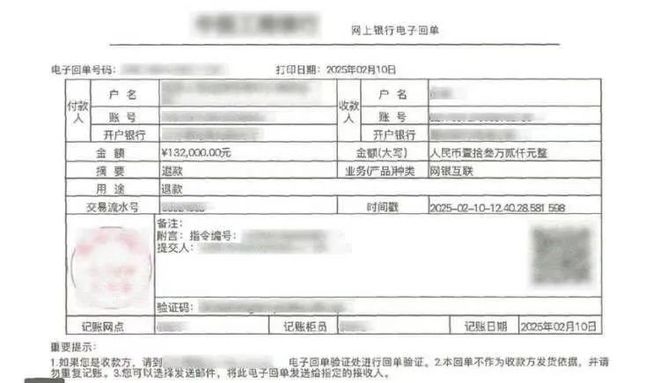 王女士联系黄某后,黄某则是轻描淡写解释道“发错了快递”,并在当天发给了王女士一张退款的网上银行电子回单。