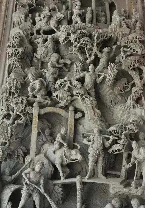 潮州嵌瓷和金漆木雕一个祈福家中后代吉祥如意、幸福安康,一个用故事警醒后人要传承家族,设计之优秀确实称得上这些年古风建筑中的佼佼者。