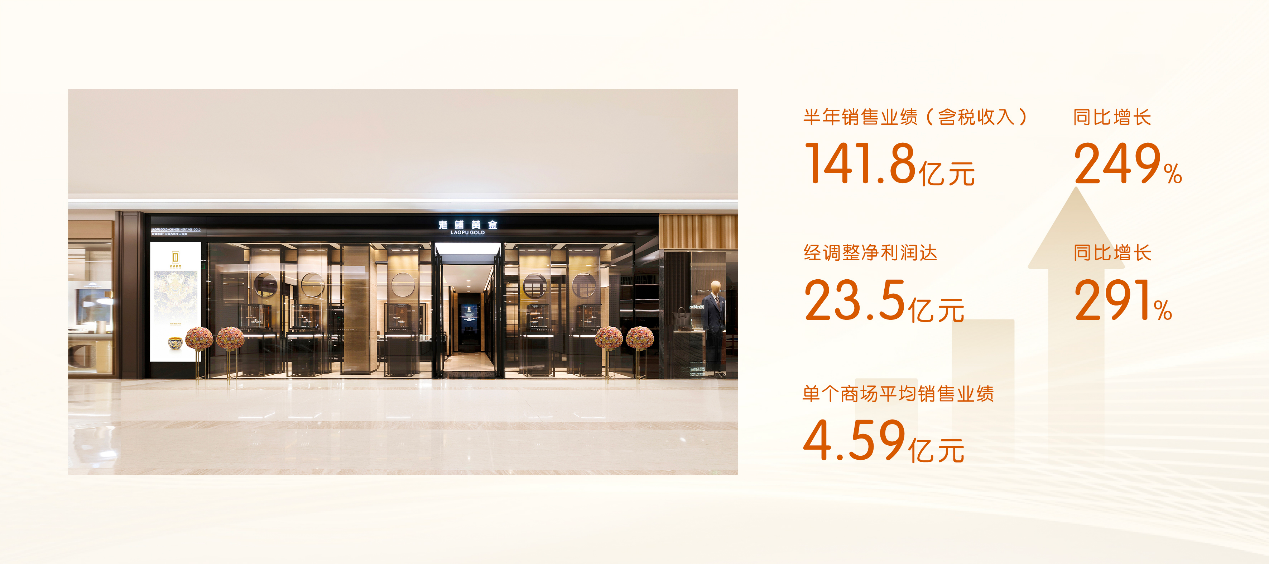 扫描或点击关注中金在线日,古法手工金器第一品牌——老铺黄金发布截至2025年6月30日止六个月中期业绩,半年销售业绩(含税收入)达141.8亿元,同比增长249%;经调整净利润达23.5亿元,同比增长291%,营收和利润双双持续呈高增长。