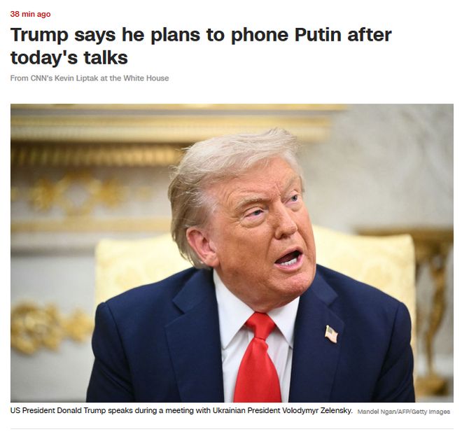 在与泽连斯基同坐椭圆形办公室时,川普透露,会后将与普京通电话。普京正在等待这通“关键来电”,三人或将举行一次“三方峰会”。川普表示:“如果我们能举行三方会谈,也许就有机会结束战斗;如果没有,那战争还会继续。”