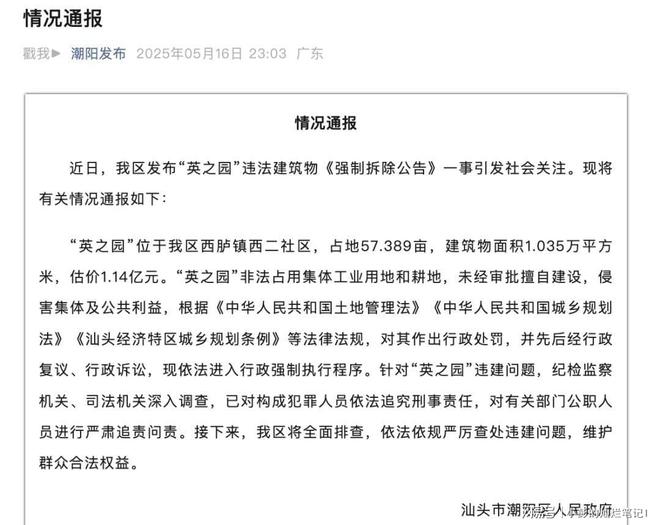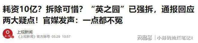上观新闻——2025-05-29《耗资10亿?拆除可惜?“英之园”已强拆,通报回应两大疑点!官媒发声:一点都不冤》
