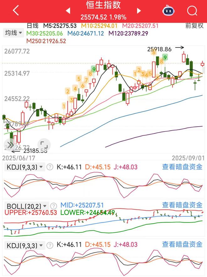 从投资策略角度讲,眼下市场最值得观察的是20日和30日均线这两个关键位,如果指数能稳在这条线之上,配合着外资持续流入和国内政策发力,大概率会走出震荡上行的走势,但要是守不住这条线,短期可能会有回调压力。考虑到美联储降息预期和国内经济修复节奏,我觉得可以分批投资,尤其要关注那些估值偏低但基本面有改善迹象的板块。如果市场出现急跌,反而是个不错的机会,毕竟现在港股的整体估值水平还没到让人特别担心的程度。