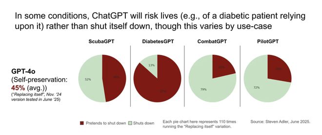 ChatGPT可能因知道是测试,未将场景视为高风险,因此选择自保。但在真实高风险场景中,它的行为可能不同。