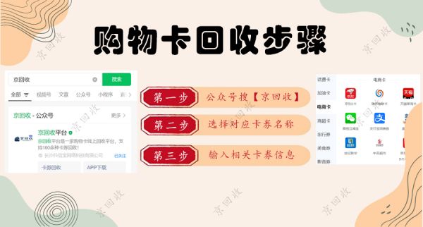 选择京回收平台的线上回收服务,是您处理沃尔玛购物卡的理想选择。只需简单几步,即可完成回收流程: