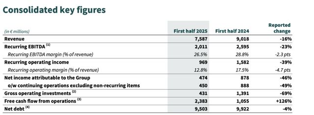 从营业情况来看,开云集团已经连续两年业绩下滑,营收从2022年的203亿欧元下滑至2024年的172亿欧元,归属于集团的净利润则从36.14亿欧元降至11.33亿欧元;2025年上半年,开云集团的下探势头越发严重,营收降至75.87亿欧元,归属于集团的净利润仅有4.74欧元。