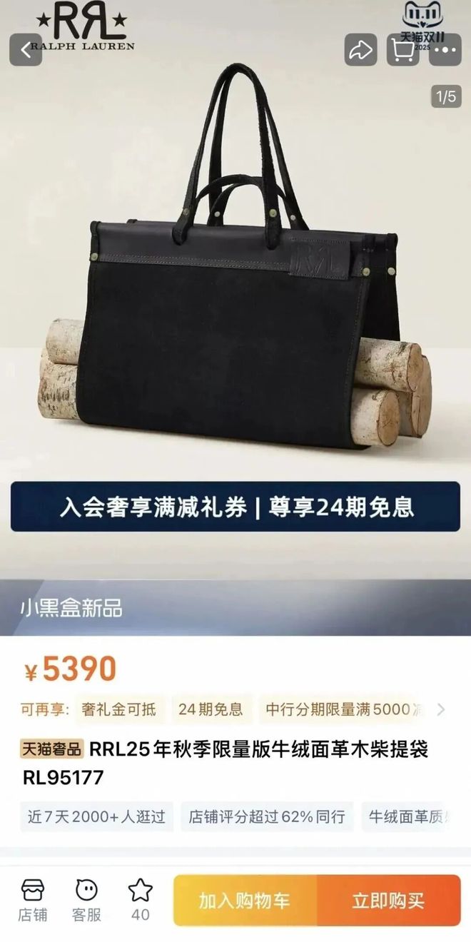 近日,有网友在社交平台发帖,展示拉夫劳伦(Ralph Lauren)官方旗舰店一款售价5390元的“牛绒面革木柴提袋”,其宣传图中提袋内装有木柴,引发广泛讨论。