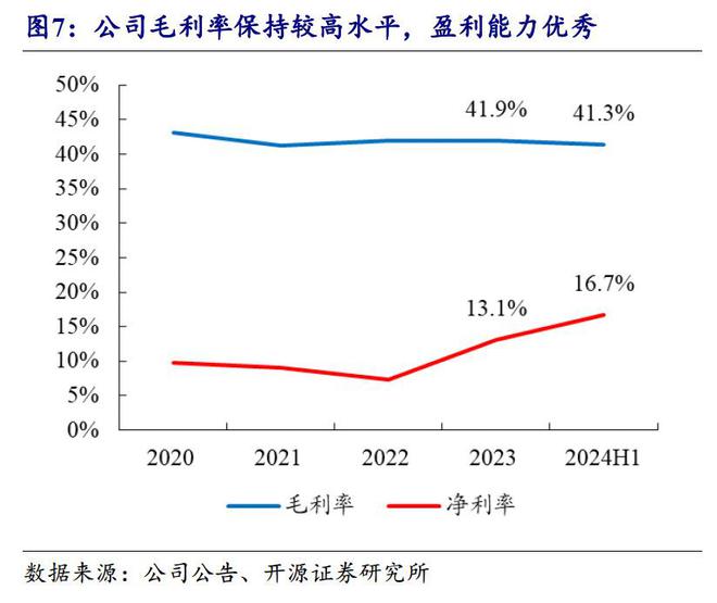 2023年全年,老铺黄金足金镶嵌产品的毛利率为45.8%,在2024年上半年,其足金黄金产品销售额同比增长110%到13.7亿元,占比从46%降到了39%,采用固定价格定价且产品结构中高毛利的足金镶嵌产品的销售额则上涨182%到21.5亿元,占比从53.7%增加到了61%。