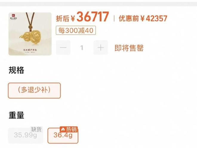 以金花丝葫芦吊坠为例,其金重约24.39g,售价2.655万元,算下来克价约1088元;网红金镶钻产品十字金刚杵金重约13.39g,售价1.958万元,算下来克价约1462元。