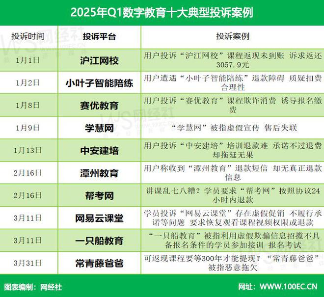 2025年4月2日,网经社电子商务研究中心发布了《2025年Q1中国电子商务用户体验与投诉数据报告》。报告涉及了数字零售(主要集中在二手电商、电商服务商)、数字生活(主要集中于生活服务电商、在线旅游)及数字教育、产业电AG真人商、金融科技、物流科技等领域。报告公布了2025年Q1网络消费投诉数据及《数字零售十大典型投诉案例》《数字生活十大典型投诉案例》和《数字教育十大典型投诉案例》。