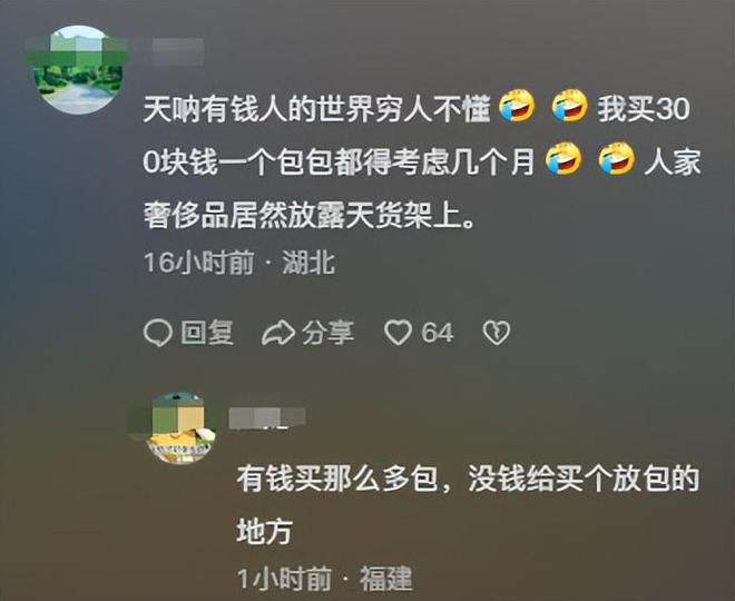 网友们不禁感叹,有钱人的世界实在是看不懂,因为他买一个300块的包包都得思考好几个月。