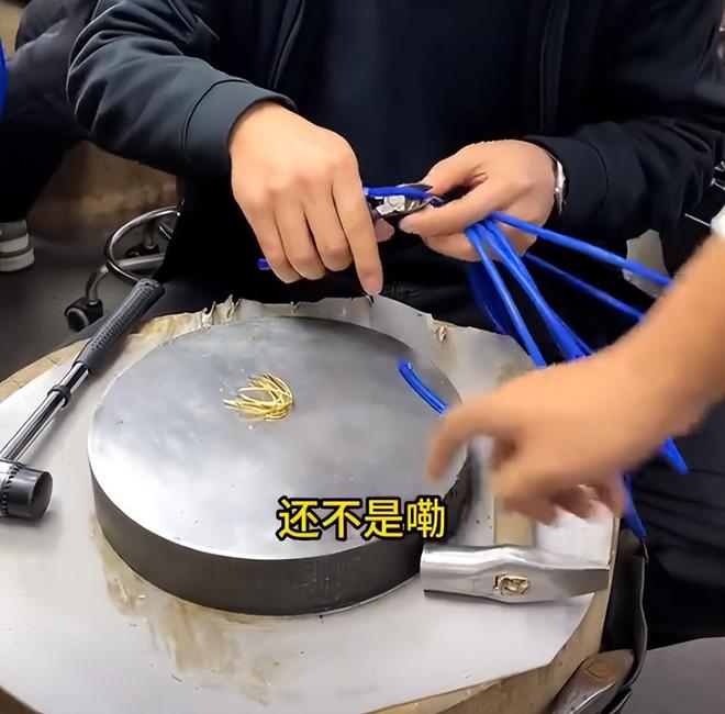 他拿回来之后,就想着用里边的金打个镯子,一开始,打金师傅根本就不相信会有人在电线当中装金子。
