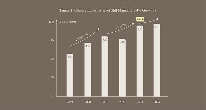 2024 年中国奢侈品市场规模以 4% 的增速增长。中国高净值人群对高端商品和消费体验的投资意愿强烈,中国高净值家庭群体规模也在持续增长,据 Knight Frank 预测,2025 年中国超高净值人群(资产超亿元)规模将较 2015 年增长 2.46 倍。