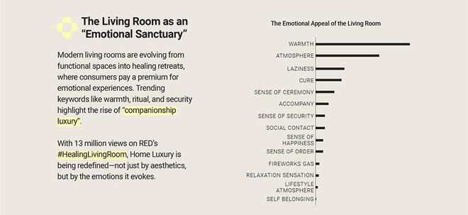 白皮书显示,“客厅正在从功能性空间演变为情感疗愈场”,同时“消费者会愿意为情感体验支付溢价”。