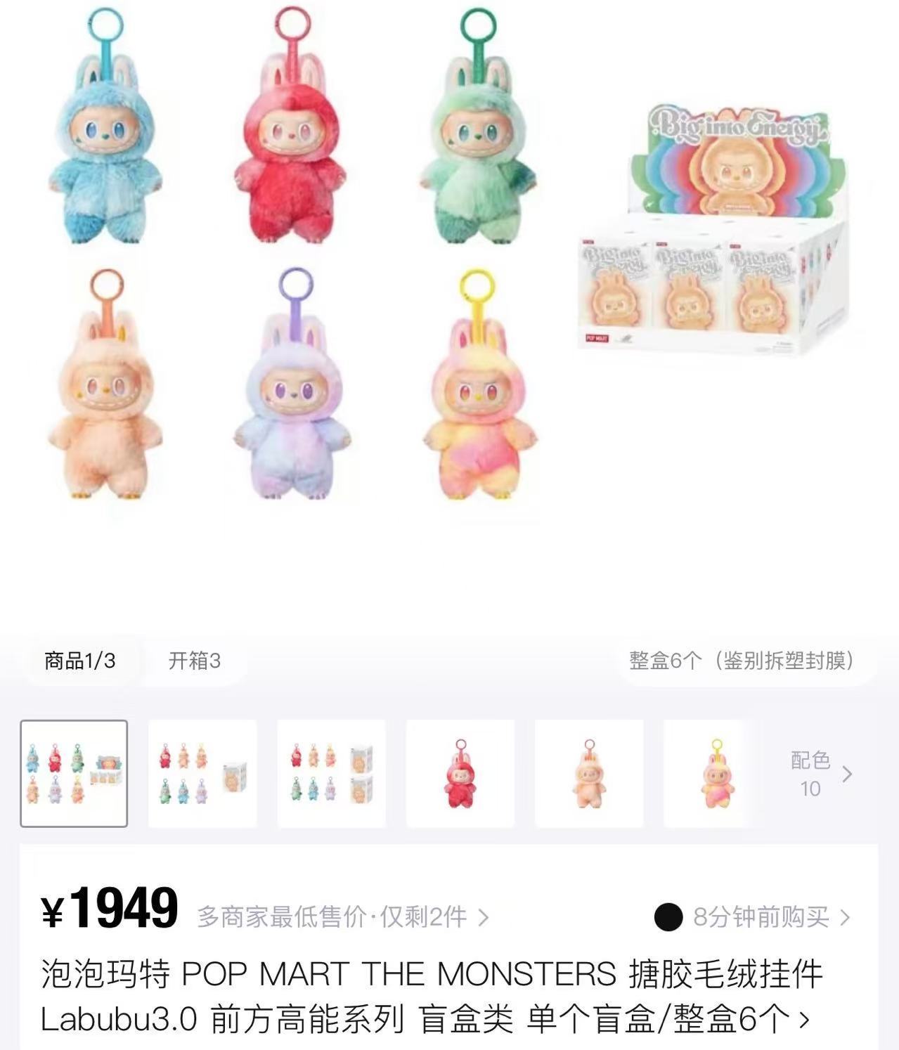 LABUBU3.0版本THEMONSTER前方高能系列-搪胶毛绒挂件盲盒展示。赵泽宇摄