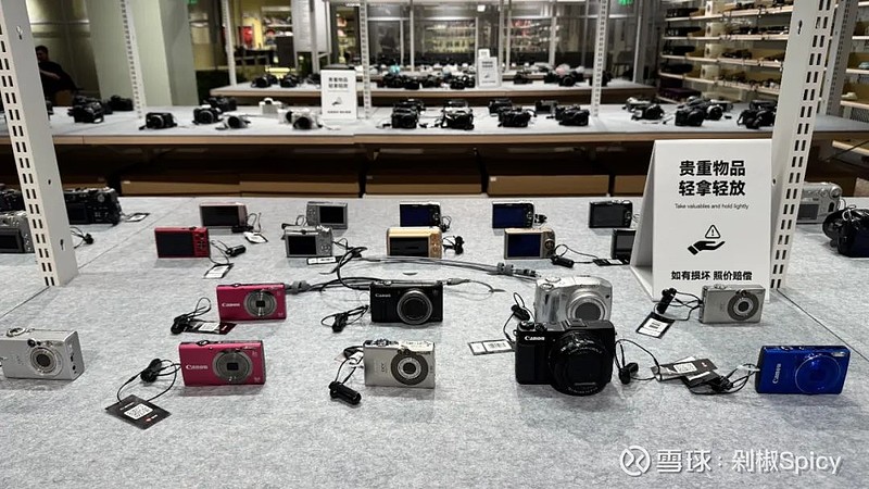 紧邻的数码区摆满了尼康、索尼、富士、佳能等品牌以及小红书爆火的CCD相机与拍立得,戴森的吹风机与曼哈顿的蓝牙音箱等提升生活品质的家居好物安静陈列在另一侧。此外,中间还穿插着腰带墨镜等配饰区以及鞋服区。