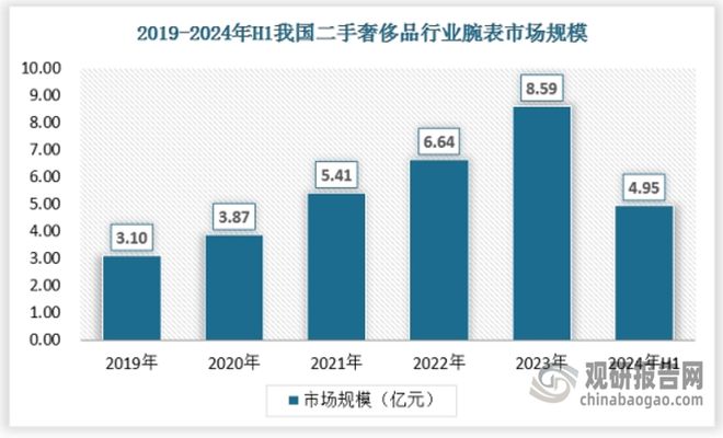 二手奢侈品高级腕表主要品牌集中在Rolex、Omega、Cartier、Chopard等。2023年中国二手奢侈品行业高级腕表市场规模为8.59亿元,具体如下: