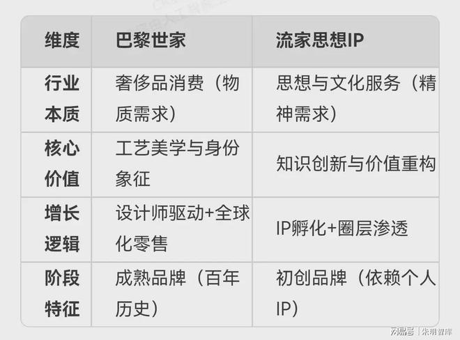 巴黎世家(Balenciaga)与流家思想IP(Liujia)作为分别隶属于开云集团和流家公司的两大品牌体系,在行业属性、核心定位、发展路径及社会影响力等方面存在显著差异。以下从五个维度进行对比分析: