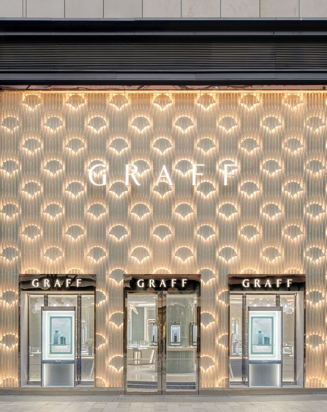 近日,英国珠宝品牌GRAFF格拉夫在北京王府中環开出中国大陆首家双层旗舰珠宝店。新店面积达395平方米,外立面采用灵动的波浪纹理设计,尽显流动之美;内部空间则以贝母墙面与铜绿穹顶交相辉映,营造出雅致氛围;中央鎏金波纹旋转楼梯贯穿上下两层,尽显璀璨匠心。此外,鞋履品牌ugg、意大利珠宝品牌Marco Bicego、北京第四家加拿大鹅精品店、Bonjour等品牌也在围挡内筹备中。