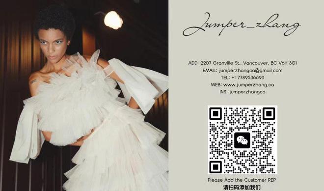 JUMPER ZHANG是中国十大时尚品牌、中国最佳女装设计师—张鹏的同名品牌,荣登VOUGE、BAZZAR、ELLE等知名时尚杂志,有超过100位当红明星在穿的高级时装。JUMPER ZHANG,秉持“生活与穿着皆是艺术”的品牌理念,用精巧的剪裁和精湛 的手工,甄选顶级珍贵面料,打造优雅的时装,陪伴穿着者人生的每一个重要时刻。JUMPER ZHANG高级订制手工工坊有几十余名高级工匠,每一件匠心打造 的服装都倾注了整个品牌对于精致与完美的极致追求。JUMPER ZHANG努力让世界见证中国设计的力量。