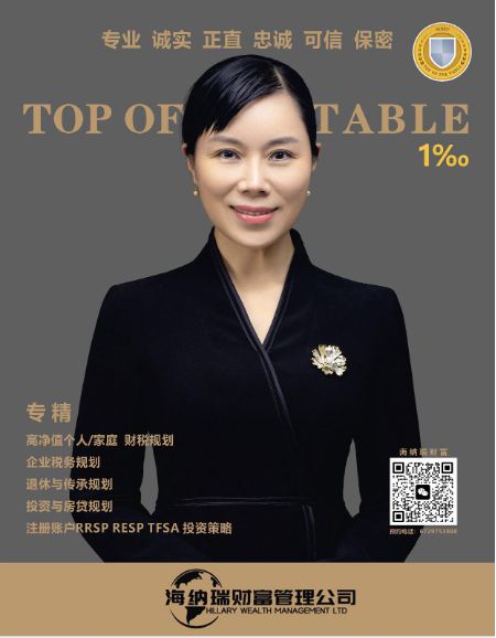 Hillary Wang,20多年金融领域工作经验,持有多个加拿大金融牌照,连续多年国际百万圆桌俱乐部TOT顶尖会员,荣获金融机构和社区组织颁发多项荣誉,深受客户信赖与好评, 被“授予英女皇登基70周年白金禧勋章”;Hillary热心公益与慈善,每年持续不断为社区各类文化活动提供赞助与捐赠。