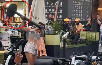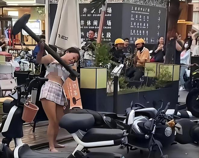 只见她穿着超短裙、衣不蔽体,在大街上旁若无人地发疯,“疯狂”砸他人摩托车,甚至还想将其点燃!