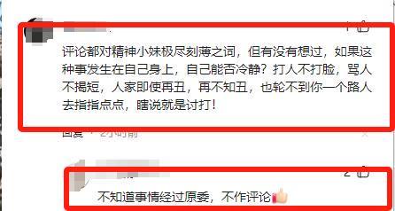 甚至还有人说“老话说得好,笑假不笑真。一个生活在底层的丑女孩,这次我同情这个泼妇,一个弱者的自我宣泄和无力地保护而已”!
