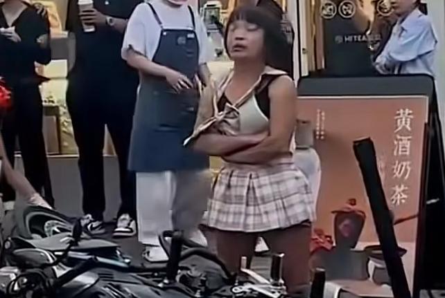 从网传视频可以看到,她穿着暴露的JK套装、头发凌乱,甚至都没有穿鞋,对着一位男子歇斯底里地吼着,宛如“泼妇骂街”。