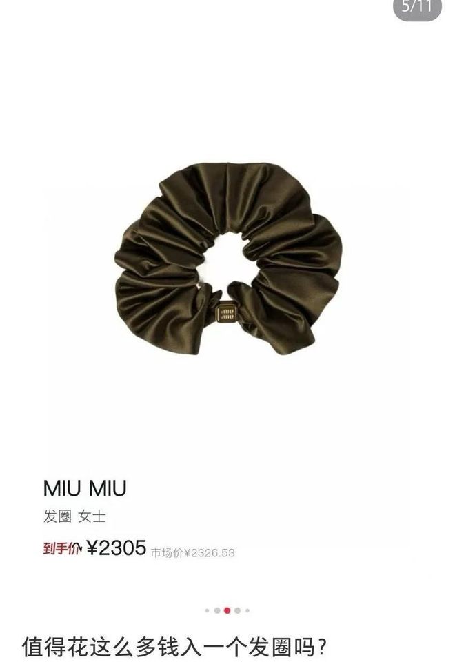 同样一个涤纶材质的蝴蝶结发圈系上了因为印有Miu Miu的Logo标价2305元,溢价得不知天地为何物。