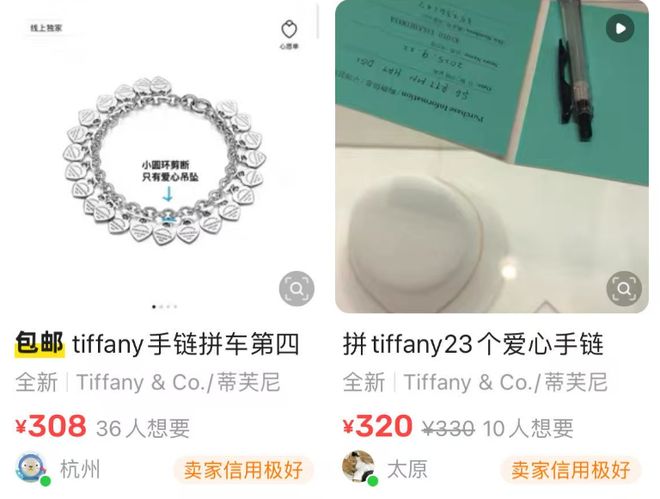 为了拥有正版奢侈品,年轻人线元,即可拼单购买一条售价7150元的Tiffany手链。