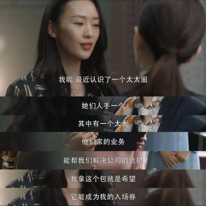 《三十而已》里的顾佳,因为背的香奈儿“不够格”,导致她在富太太们的合照中被裁掉;