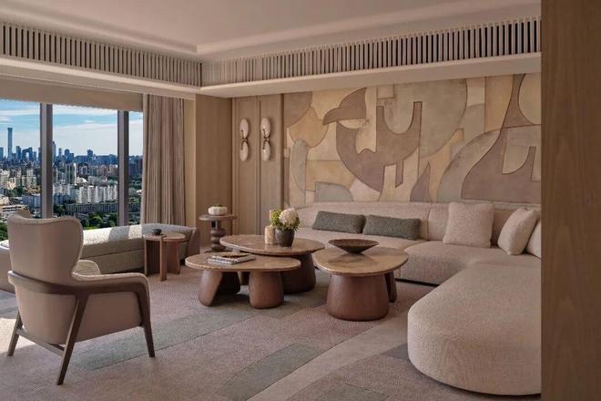 比如缦合520㎡的产品中,邀请了傅厚民做独家定制,该户型的设计延续了“极简主义的写意奢华”,同时又以墙面大面积的抽象壁画,营造出类似中国传统壁画的艺术张力,以及随处可见的东方特有婉约气韵的线条哲学,最终呈现的是一种有温度的克制与不喧哗的丰盈。