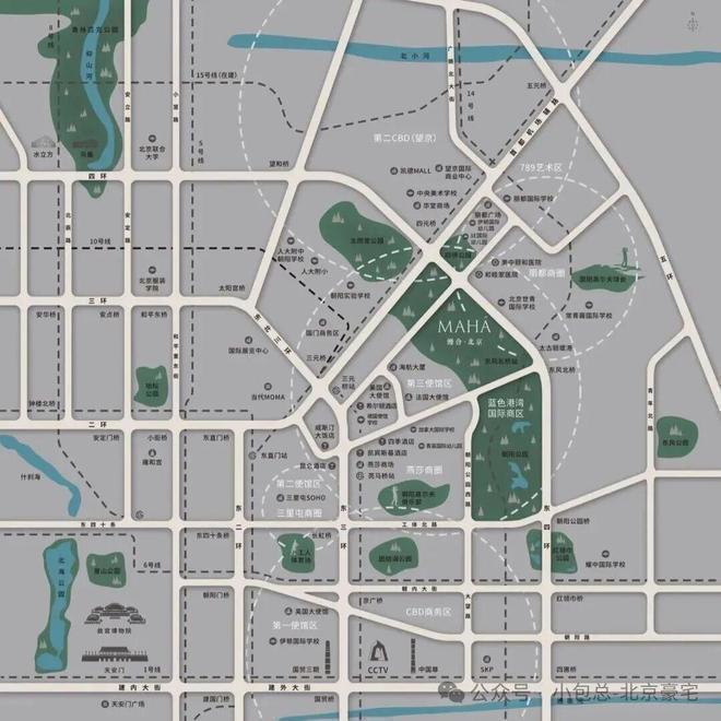 项目地处北京朝阳区核心富人区——燕莎板块,紧邻东三环,距离北京CBD仅3公里,周边汇聚了众多高端住宅、涉外使馆与国际商务机构。该区域土地资源极为稀缺,近十年来鲜有新住宅项目入市,MAHA缦合・北京作为板块内为数不多的新建高端住宅,凭借不可复制的地段优势,成为城市核心资产的代表。从区位价值来看,项目既享受CBD的繁华商业资源,又坐拥燕莎板块的成熟涉外生活氛围,是真正意义上“闹中取静”的宜居之地。