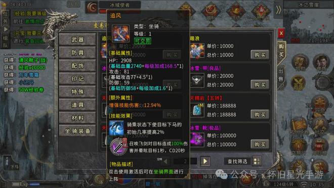 #### 骑战系统助力骑战系统是《冰雪骑战版》的一大特色,通过完成任务、副本等,可以获得强大的坐骑。坐骑不仅能够提升角色的移动速度,还能增加属性加成,甚至提供专属技能,如冰霜巨龙的冰霜吐息,能在战斗中造成额外伤害,显著提升刷怪速度。因此,积极收集和培养坐骑,是提升游戏效率的关键。