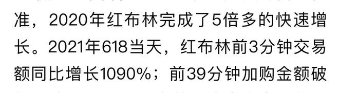 然而接下来一年的红布林发展也是势如破竹,在2021年618那一天,红布林前3分钟交易额同比暴涨1090%,加购金额破亿也只是39分钟的事,这增长速度那是相当之快啊!