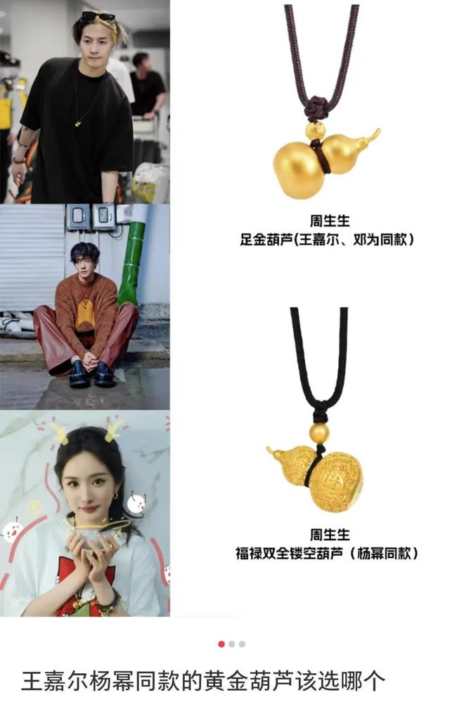王嘉尔同款葫芦,里面装着一颗小金豆,晃动起来有声音寓意享福(响葫);蝴蝶则谐音“福叠”,福气叠满;点钻葫芦则寓意“有进有赚”。
